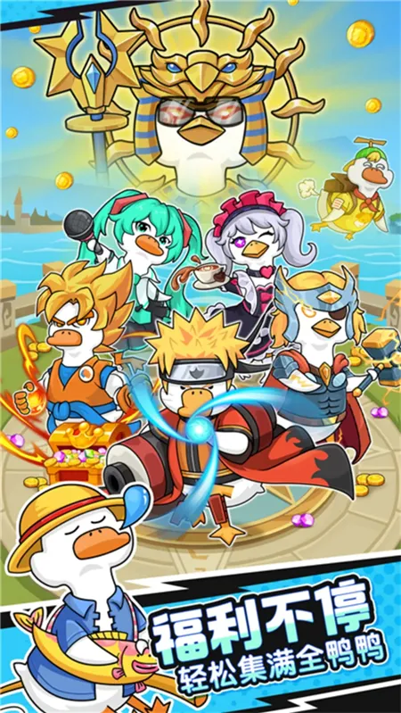 4. **角色养成**:无限开蛋收集资源升级角色,轻松养成不氪肝,鸭子技能多样,收集不同鸭子组成强力卡组,乐趣无穷。