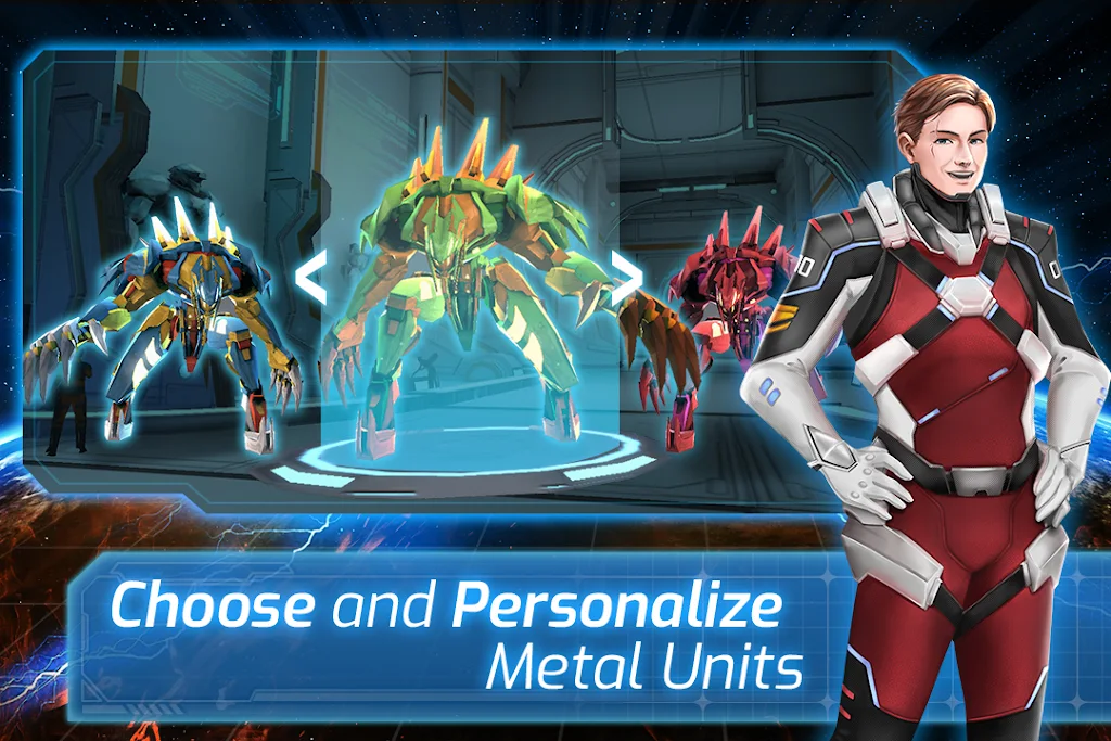 1、多样化金属单位,玩家可依据喜好和策略需求,从多种类型的机器人中自由挑选,每个金属单位都有独特攻击手段及移动闪避、防御特色,熟悉这些属性是胜利关键。