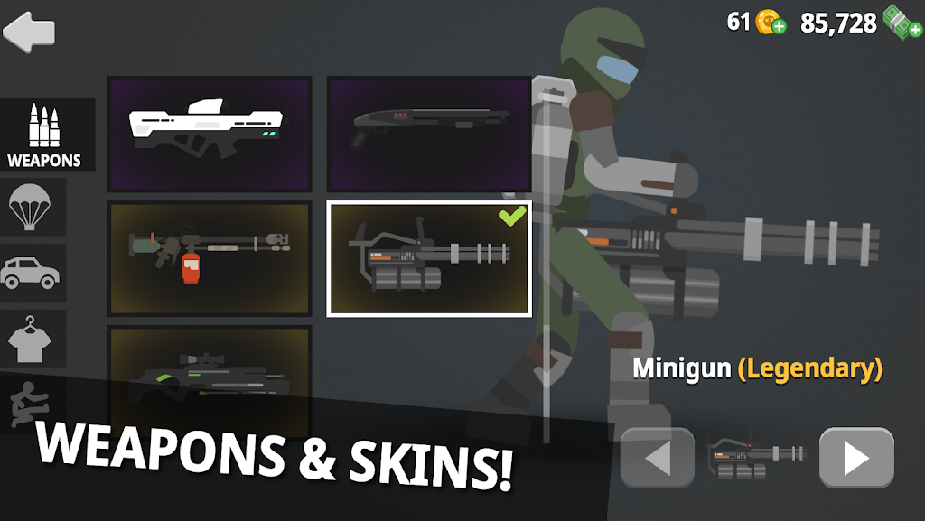 4. 高度自由的火柴人自定义系统,能自由定义专属形象,通过丰富搭配塑造独特风格,打造个性化战斗策略。