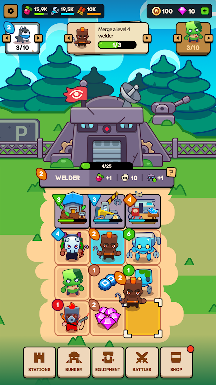 游戏主打放置类RPG元素,玩家通过合成英雄武器和各种模块,实力不断壮大。合成系统是升级关键路径,将相同等级的物品合成,能解锁更强大的单位和工具,带来全新技能组合和特殊功能。