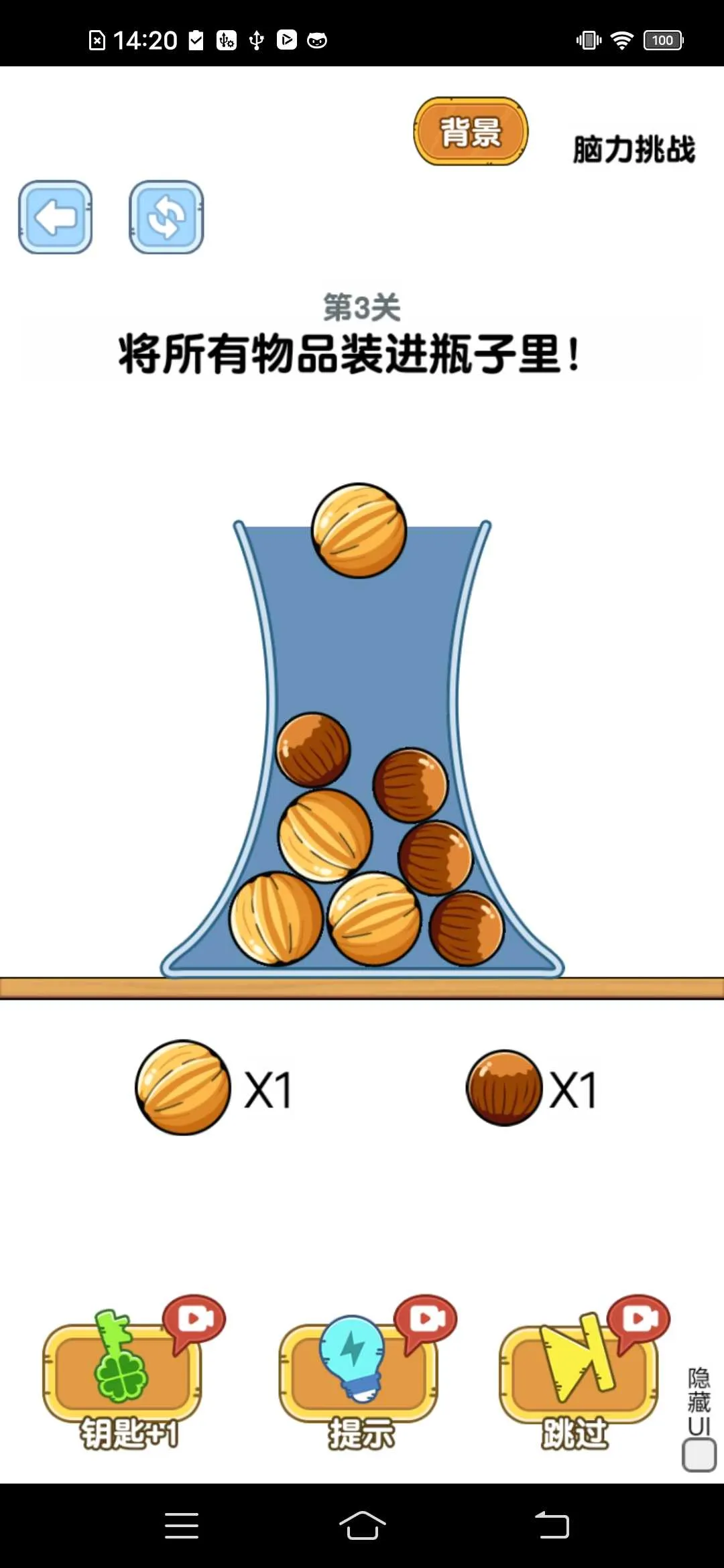 2、游戏关卡丰富多样,围绕瓶子展开,将不同大小物品装进瓶子,放置顺序很关键,过程精彩。
