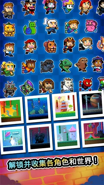2、游戏操作简单,点击屏幕就能控制角色跳跃,新手也能轻松上手。同时有多种刺激玩法、紧凑剧情,还有数十个不同主题关卡及丰富角色供玩家解锁挑战。