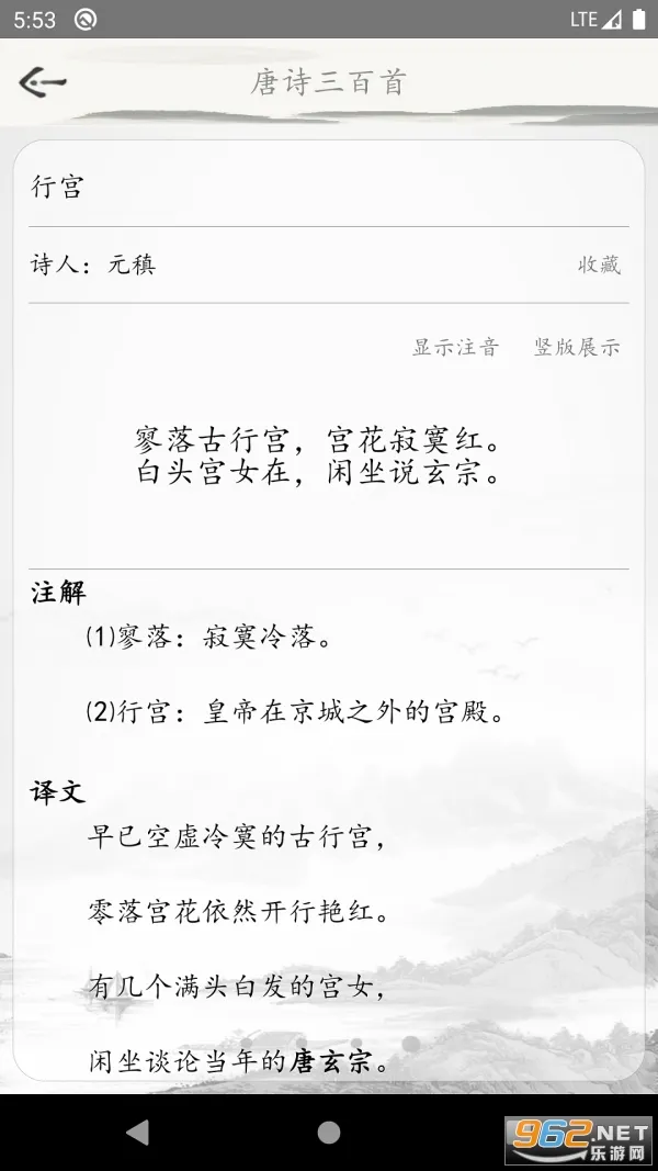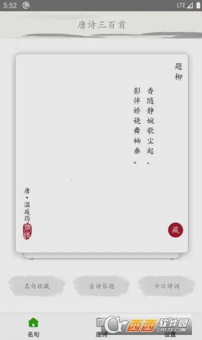 唐诗三百首古诗词APP是移动学习软件,收录大量唐代诗作、名句及详尽注释译文。支持多维分类检索、每日推送,有答题、收藏等功能,界面清晰,免费开放,适配各年龄段,助用户高效学唐诗 。